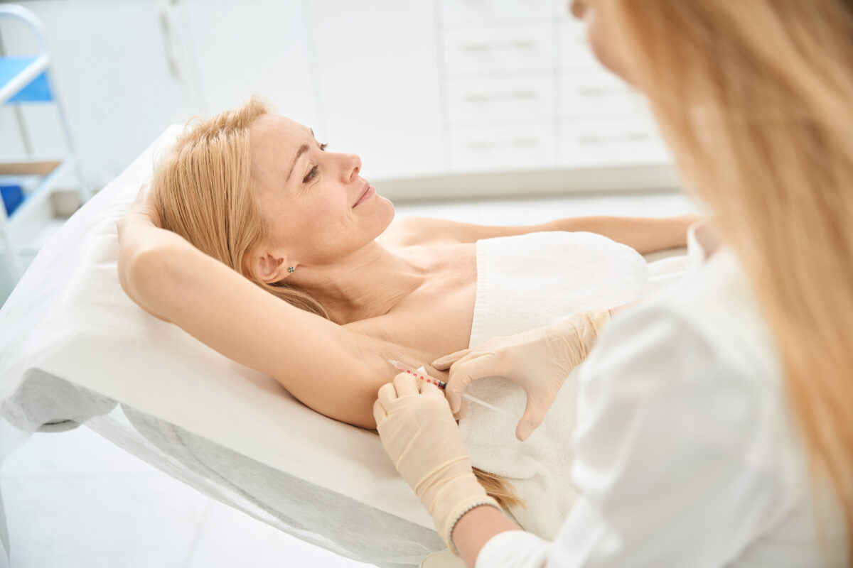 Själva behandlingen tar endast några minuter. Med hjälp av mycket fina nålar injicerar vi botox i de områden som behöver korrigering.